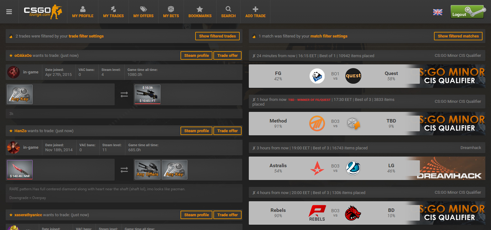 The features included extended match information (line-up, previous match-ups, ranking) for which there was a whole separate project dedicated for scraping that information, trade and match filtering (so you can filter unnecessary entries with your own set of criteria), providing market values for the items (for which I borrowed my STEAMEXPERT project APIs to power my own extension), notifications when something happens on the site (new comments or a new match added), completely changing site’s design by creating theme support, various currency and timezone support and much more.