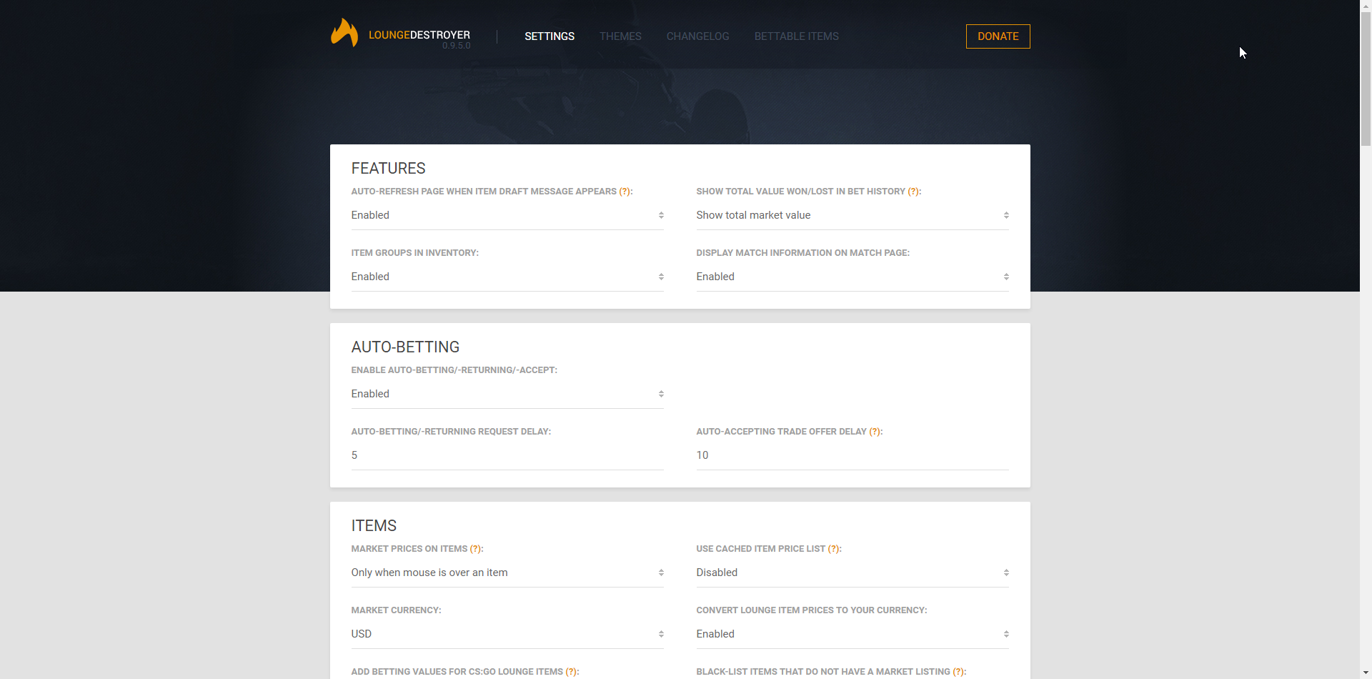 Browser extension that improved user experience by adding many features to a match betting site where you could bet on professional matches with virtual CS:GO game items on a site called CSGOLounge.