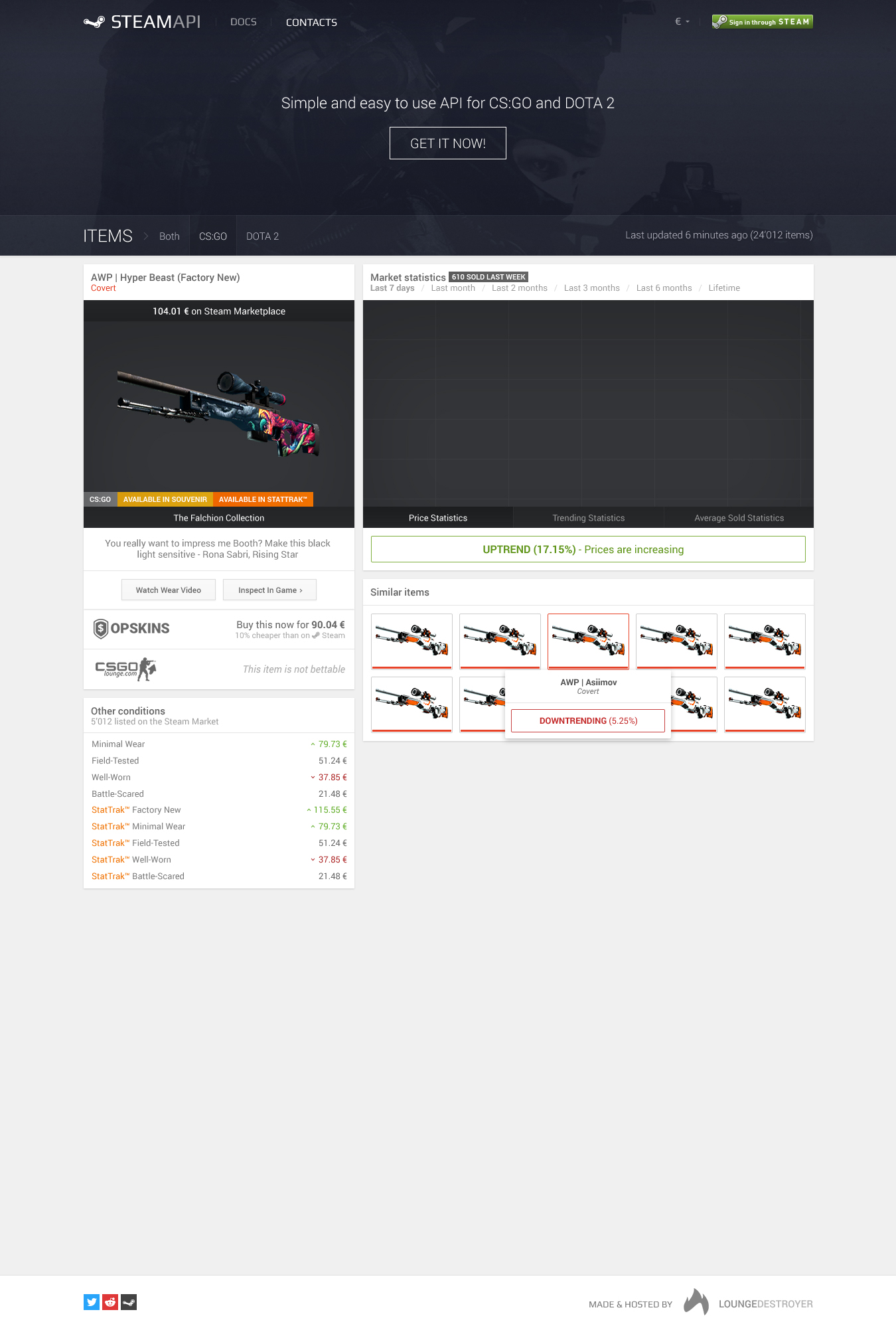 STEAMEXPERT was supposed to be a project about Steam Community item market data, it would make anyone excited who does item trading, selling and collecting. Providing in-depth statistics for not just for one game, but for all applications that utilized Steam item market. We were scraping so many pages (100,000+ pages, one for each market item) so that we could just calculate how much money Gabe Newell is earning per day from the virtual item transaction fee.